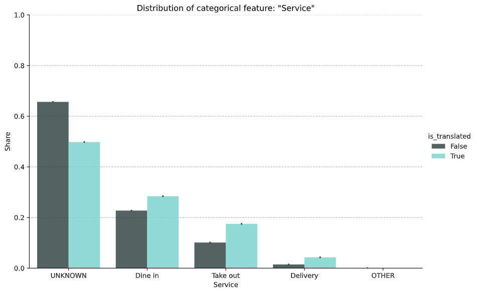 | Supported values for "Service" | Dine in, Take out, Delivery |